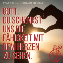 Du, Gott, du bist da. Du hast uns die Fähigkeit geschenkt, das zu sehen, was keine Kamera sehen kann, nämlich das Herz, das Innere des Menschen, was ihn im Grunde bewegt. Bewahre uns diese innere Aufmerksamkeit füreinander, dass wir den Anderen achten und beschützen. Danke für deine Lieb, die in unseren Herzen zur Entfaltung kommen will. Segne diesen Tag. Amen.