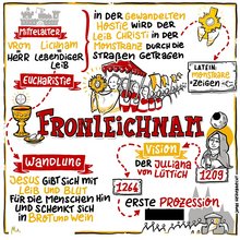 Das Fest „Fronleichnam“ feiern wir schon seit vielen Jahrhunderten. Das Wort kommt aus dem Mittelhochdeutschen. Es besteht aus zwei Teilen: „Vron“ bedeutete damals „Herr“ und „Lichnam“ „Leib“, also Körper. „Fronleichnam“ bedeutet dann also so viel wie „Das Fest des Leibes Christi“.